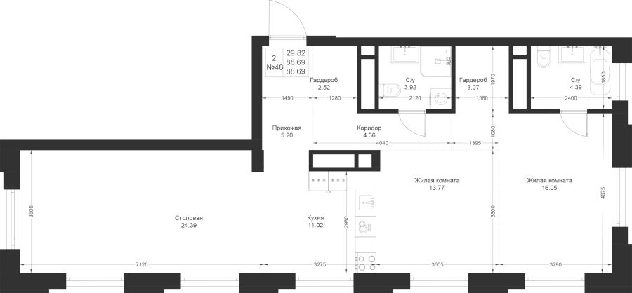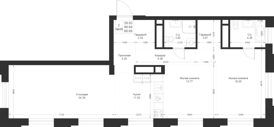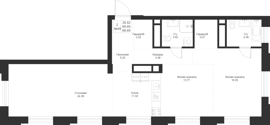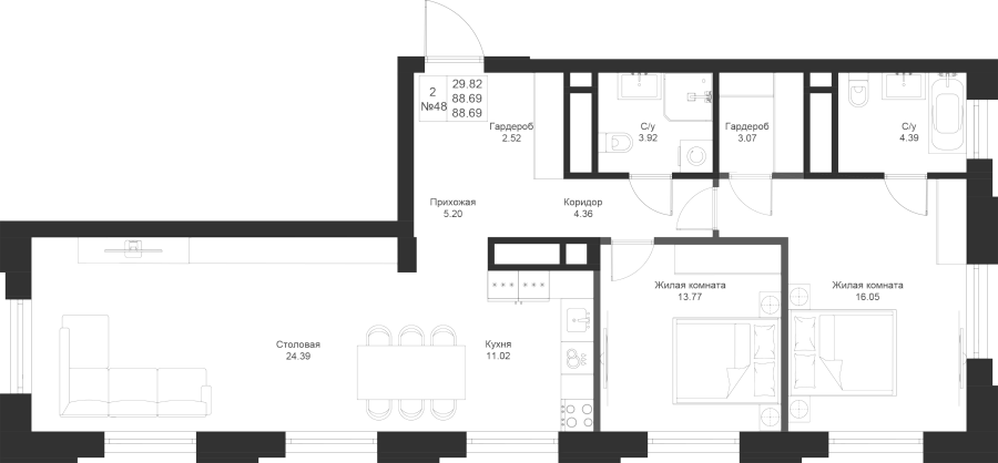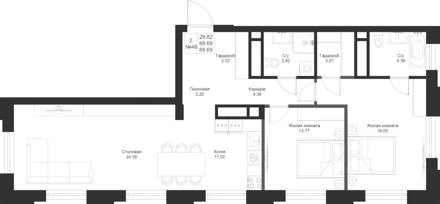 Визуализация и планировка, в том числе в части площади и размера стен жилого помещения, являются проектными и могут быть изменены в ходе строительства объекта. Цена квартиры зависит от выбранной программы и акции, актуальные цены можно уточнить у менеджеров и на момент заключения договора.