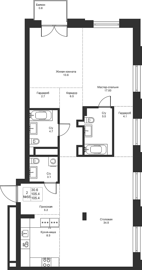 Визуализация и планировка, в том числе в части площади и размера стен жилого помещения, являются проектными и могут быть изменены в ходе строительства объекта. Цена квартиры зависит от выбранной программы и акции, актуальные цены можно уточнить у менеджеров и на момент заключения договора.