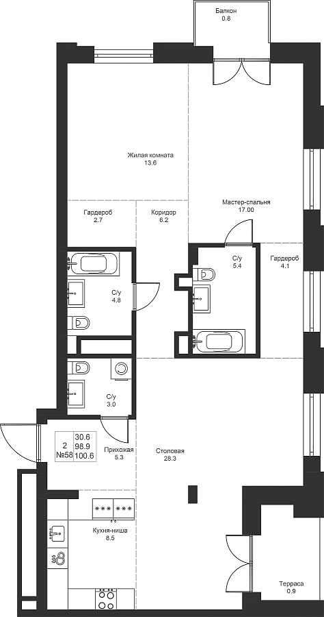 Визуализация и планировка, в том числе в части площади и размера стен жилого помещения, являются проектными и могут быть изменены в ходе строительства объекта. Цена квартиры зависит от выбранной программы и акции, актуальные цены можно уточнить у менеджеров и на момент заключения договора.