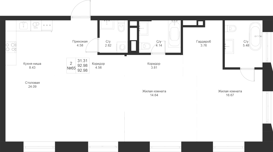 Визуализация и планировка, в том числе в части площади и размера стен жилого помещения, являются проектными и могут быть изменены в ходе строительства объекта. Цена квартиры зависит от выбранной программы и акции, актуальные цены можно уточнить у менеджеров и на момент заключения договора.