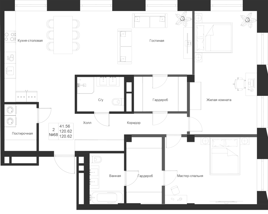 Визуализация и планировка, в том числе в части площади и размера стен жилого помещения, являются проектными и могут быть изменены в ходе строительства объекта. Цена квартиры зависит от выбранной программы и акции, актуальные цены можно уточнить у менеджеров и на момент заключения договора.