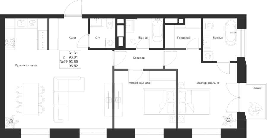 Визуализация и планировка, в том числе в части площади и размера стен жилого помещения, являются проектными и могут быть изменены в ходе строительства объекта. Цена квартиры зависит от выбранной программы и акции, актуальные цены можно уточнить у менеджеров и на момент заключения договора.