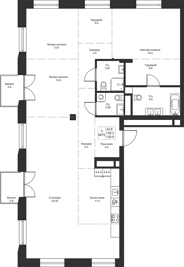 Визуализация и планировка, в том числе в части площади и размера стен жилого помещения, являются проектными и могут быть изменены в ходе строительства объекта. Цена квартиры зависит от выбранной программы и акции, актуальные цены можно уточнить у менеджеров и на момент заключения договора.