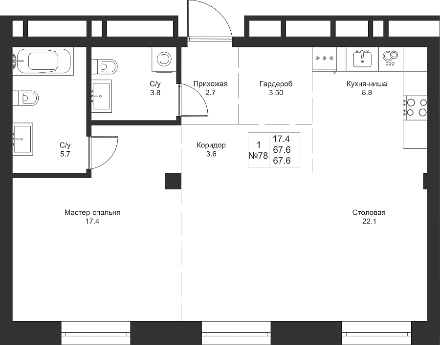 Визуализация и планировка, в том числе в части площади и размера стен жилого помещения, являются проектными и могут быть изменены в ходе строительства объекта. Цена квартиры зависит от выбранной программы и акции, актуальные цены можно уточнить у менеджеров и на момент заключения договора.