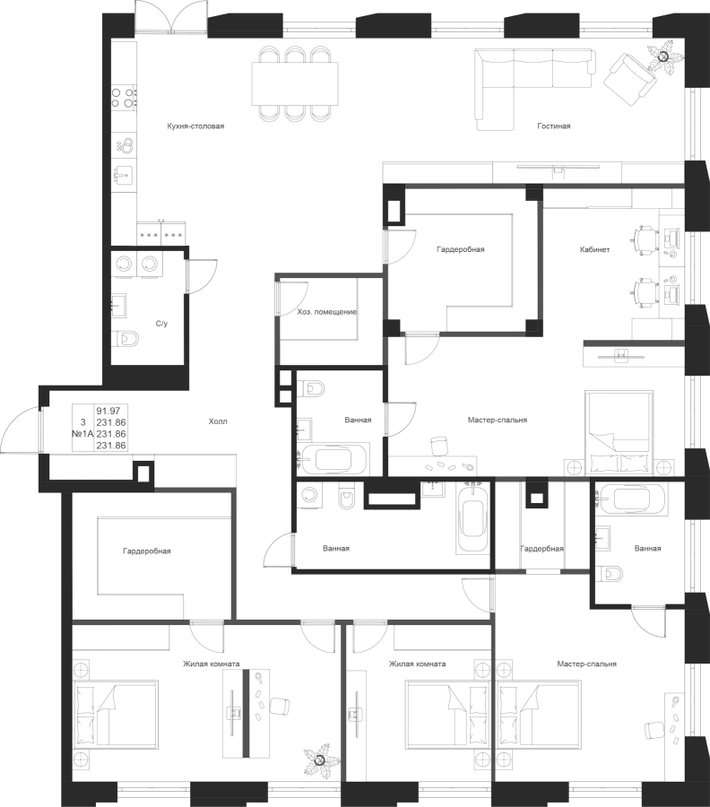 Визуализация и планировка, в том числе в части площади и размера стен жилого помещения, являются проектными и могут быть изменены в ходе строительства объекта. Цена квартиры зависит от выбранной программы и акции, актуальные цены можно уточнить у менеджеров и на момент заключения договора.