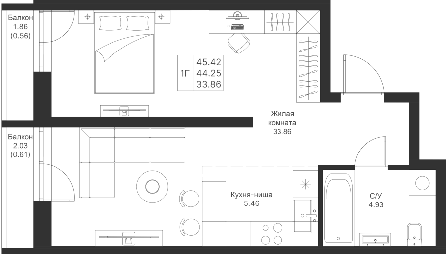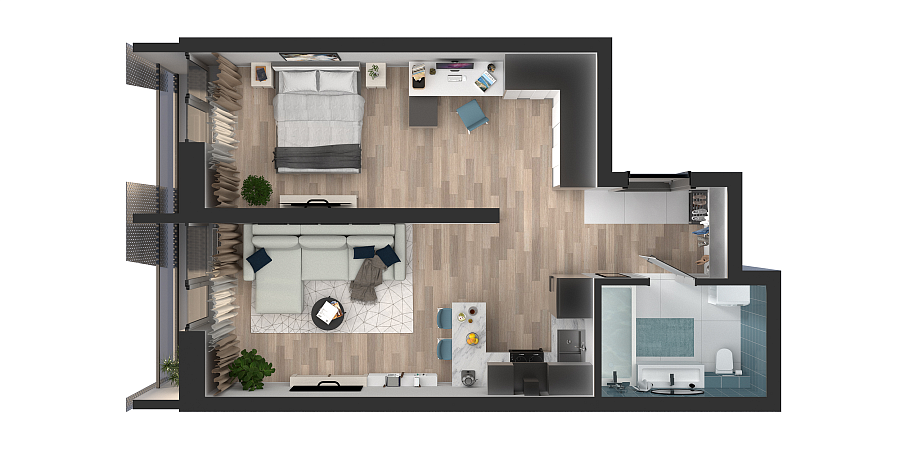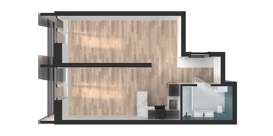 Визуализация и планировка, в том числе в части площади и размера стен жилого помещения, являются проектными и могут быть изменены в ходе строительства объекта. Цена квартиры зависит от выбранной программы и акции, актуальные цены можно уточнить у менеджеров и на момент заключения договора.