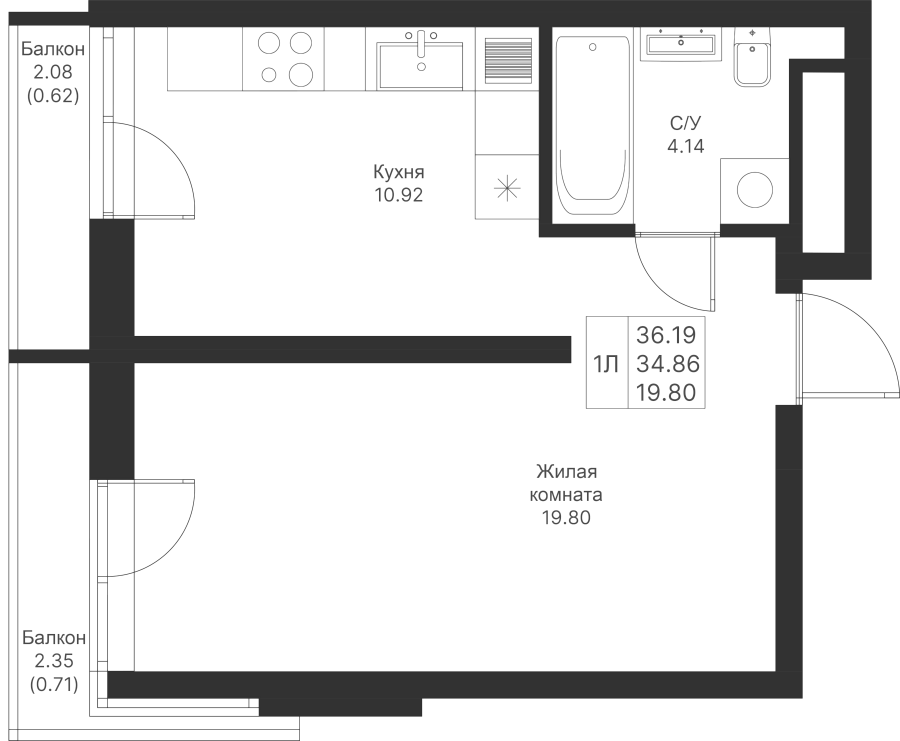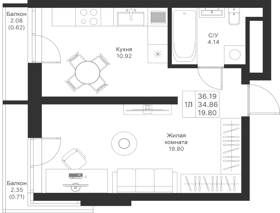Визуализация и планировка, в том числе в части площади и размера стен жилого помещения, являются проектными и могут быть изменены в ходе строительства объекта. Цена квартиры зависит от выбранной программы и акции, актуальные цены можно уточнить у менеджеров и на момент заключения договора.