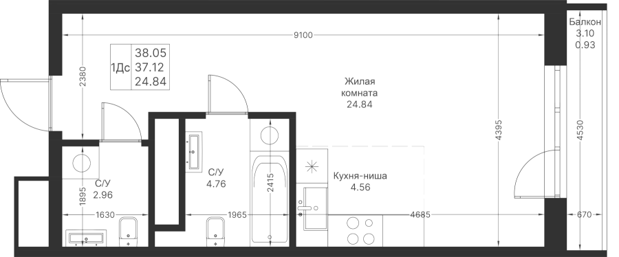 Визуализация и планировка, в том числе в части площади и размера стен жилого помещения, являются проектными и могут быть изменены в ходе строительства объекта. Цена квартиры зависит от выбранной программы и акции, актуальные цены можно уточнить у менеджеров и на момент заключения договора.