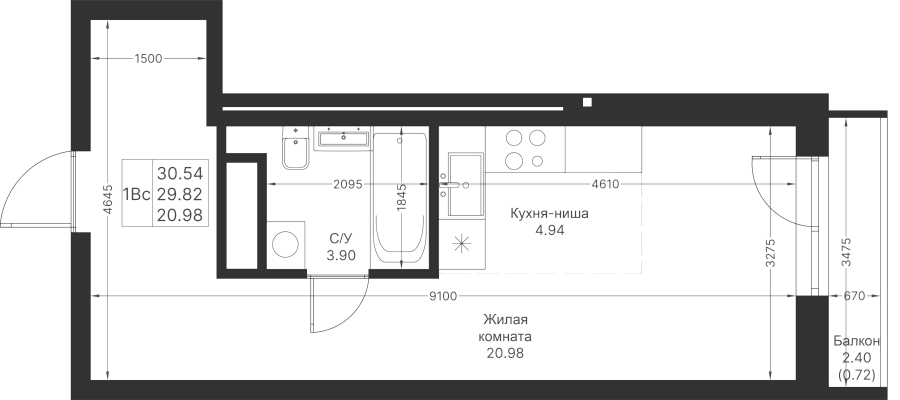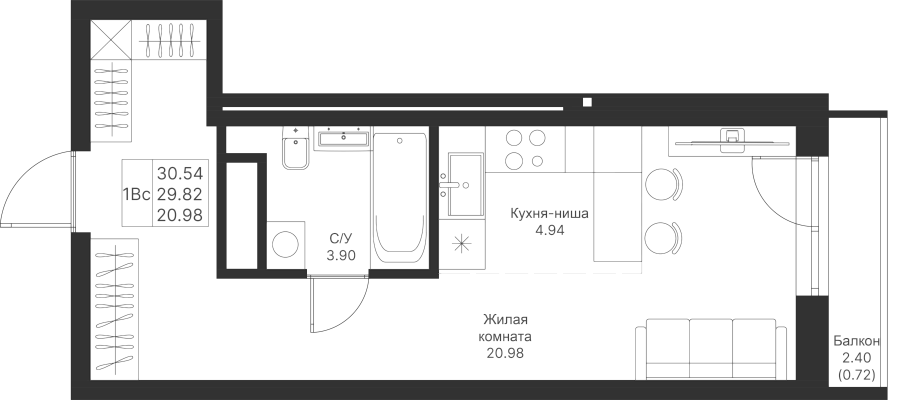 Визуализация и планировка, в том числе в части площади и размера стен жилого помещения, являются проектными и могут быть изменены в ходе строительства объекта. Цена квартиры зависит от выбранной программы и акции, актуальные цены можно уточнить у менеджеров и на момент заключения договора.