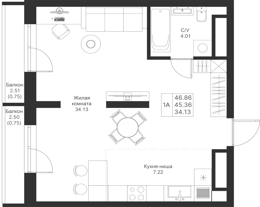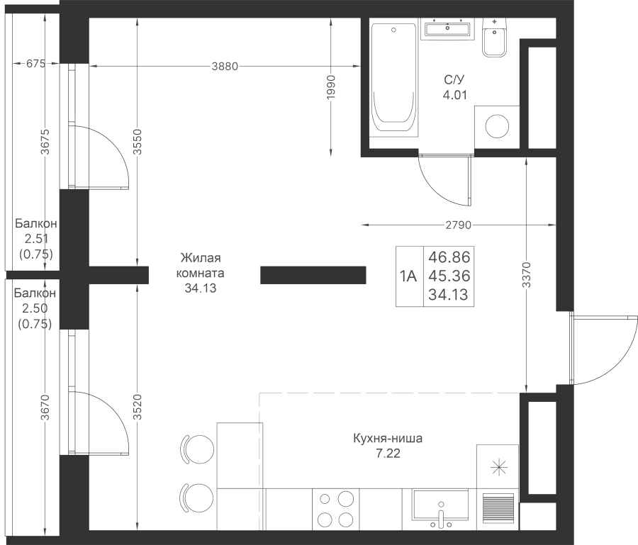 Визуализация и планировка, в том числе в части площади и размера стен жилого помещения, являются проектными и могут быть изменены в ходе строительства объекта. Цена квартиры зависит от выбранной программы и акции, актуальные цены можно уточнить у менеджеров и на момент заключения договора.