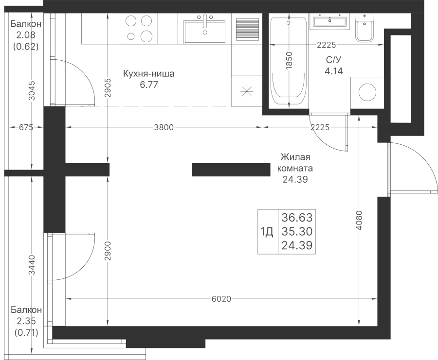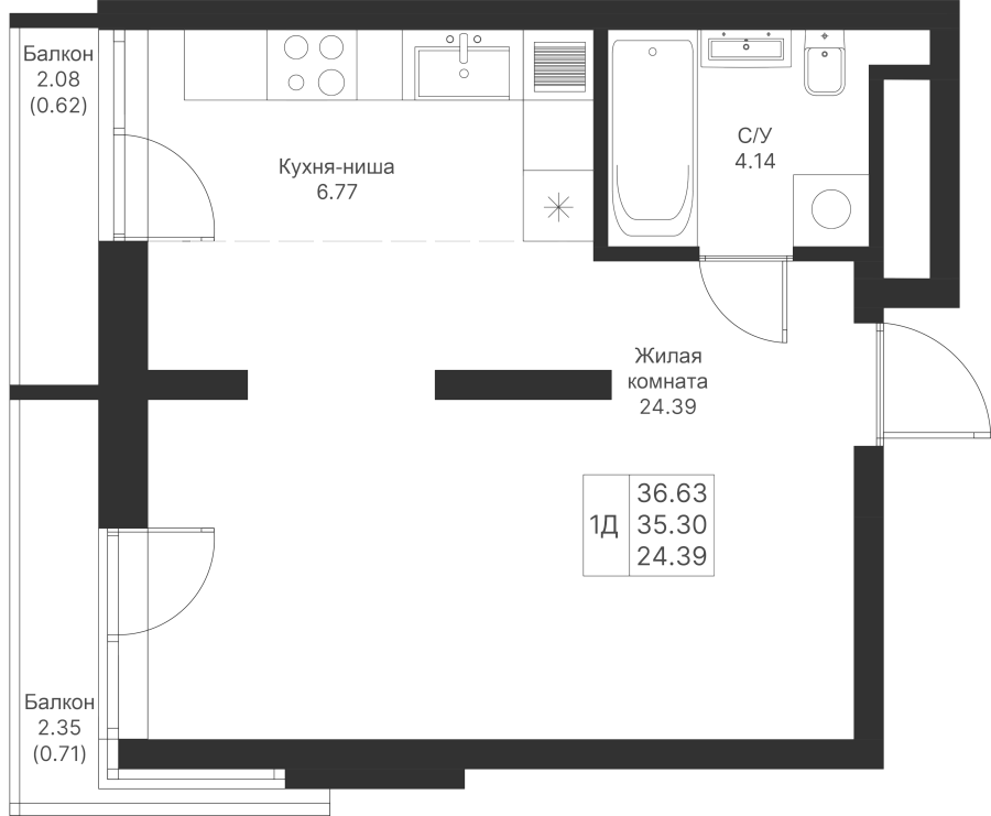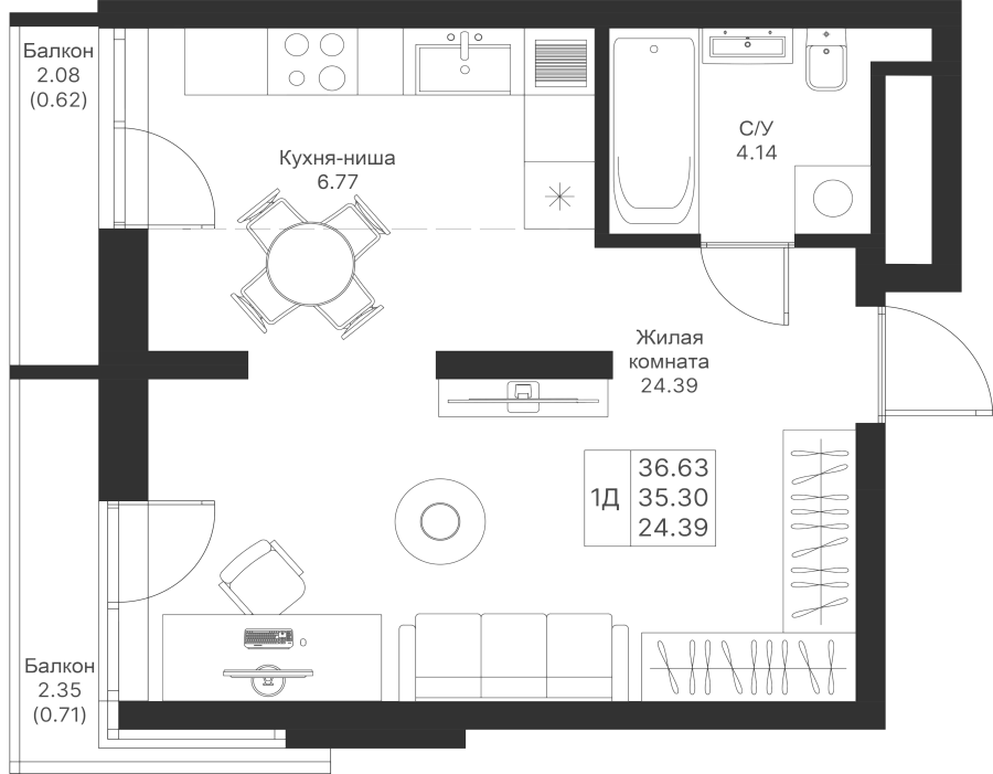 Визуализация и планировка, в том числе в части площади и размера стен жилого помещения, являются проектными и могут быть изменены в ходе строительства объекта. Цена квартиры зависит от выбранной программы и акции, актуальные цены можно уточнить у менеджеров и на момент заключения договора.