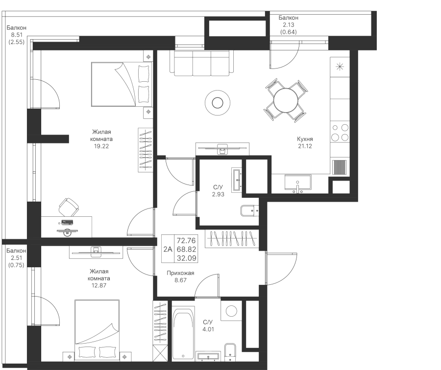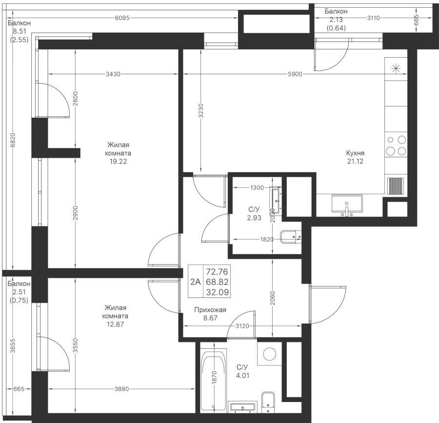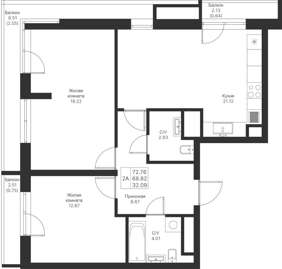Визуализация и планировка, в том числе в части площади и размера стен жилого помещения, являются проектными и могут быть изменены в ходе строительства объекта. Цена квартиры зависит от выбранной программы и акции, актуальные цены можно уточнить у менеджеров и на момент заключения договора.