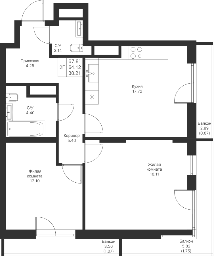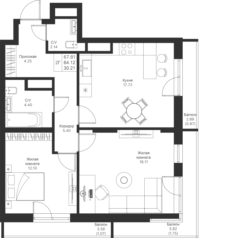 Визуализация и планировка, в том числе в части площади и размера стен жилого помещения, являются проектными и могут быть изменены в ходе строительства объекта. Цена квартиры зависит от выбранной программы и акции, актуальные цены можно уточнить у менеджеров и на момент заключения договора.
