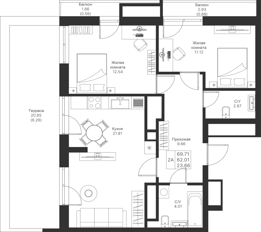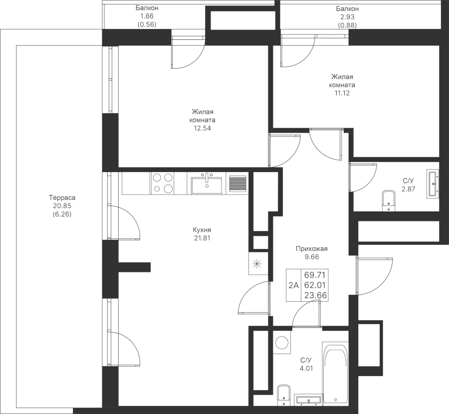 Визуализация и планировка, в том числе в части площади и размера стен жилого помещения, являются проектными и могут быть изменены в ходе строительства объекта. Цена квартиры зависит от выбранной программы и акции, актуальные цены можно уточнить у менеджеров и на момент заключения договора.