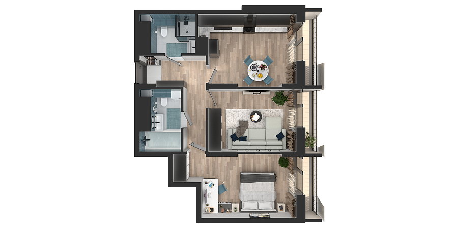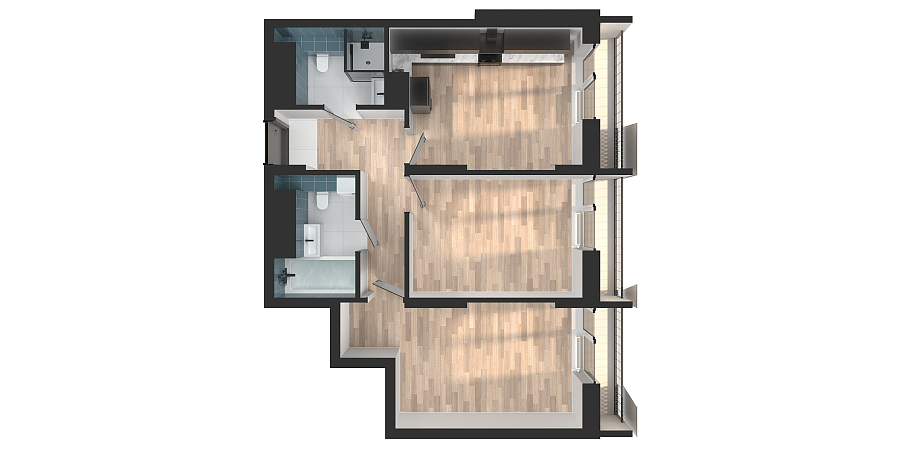 Визуализация и планировка, в том числе в части площади и размера стен жилого помещения, являются проектными и могут быть изменены в ходе строительства объекта. Цена квартиры зависит от выбранной программы и акции, актуальные цены можно уточнить у менеджеров и на момент заключения договора.