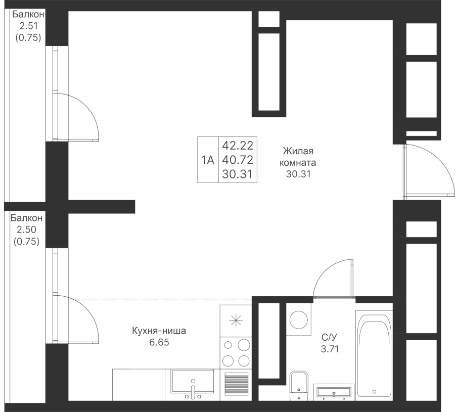 Визуализация и планировка, в том числе в части площади и размера стен жилого помещения, являются проектными и могут быть изменены в ходе строительства объекта. Цена квартиры зависит от выбранной программы и акции, актуальные цены можно уточнить у менеджеров и на момент заключения договора.