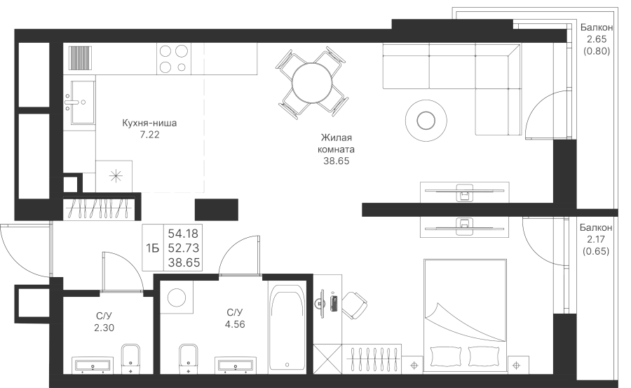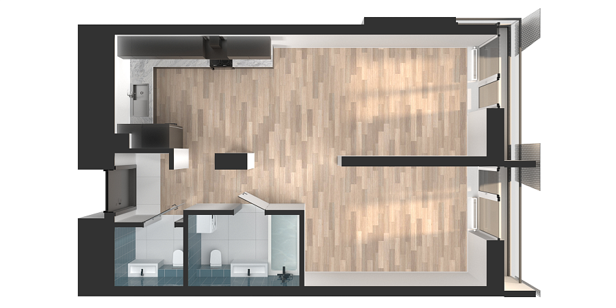 Визуализация и планировка, в том числе в части площади и размера стен жилого помещения, являются проектными и могут быть изменены в ходе строительства объекта. Цена квартиры зависит от выбранной программы и акции, актуальные цены можно уточнить у менеджеров и на момент заключения договора.
