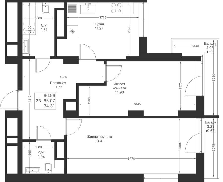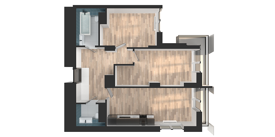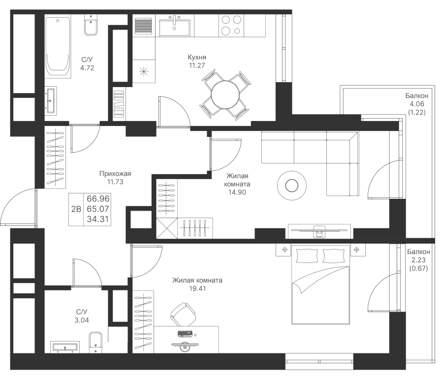 Визуализация и планировка, в том числе в части площади и размера стен жилого помещения, являются проектными и могут быть изменены в ходе строительства объекта. Цена квартиры зависит от выбранной программы и акции, актуальные цены можно уточнить у менеджеров и на момент заключения договора.