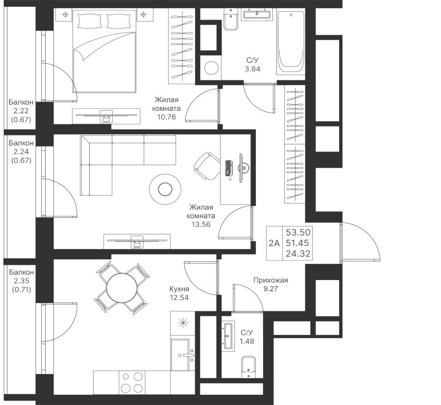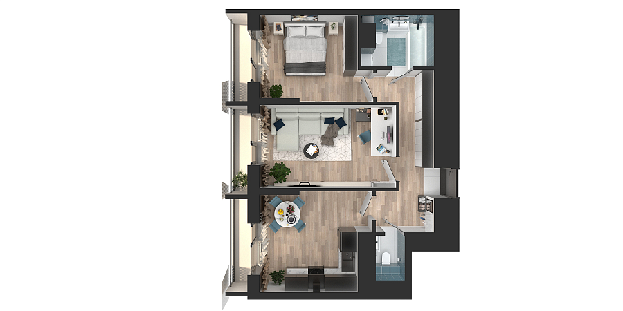Визуализация и планировка, в том числе в части площади и размера стен жилого помещения, являются проектными и могут быть изменены в ходе строительства объекта. Цена квартиры зависит от выбранной программы и акции, актуальные цены можно уточнить у менеджеров и на момент заключения договора.