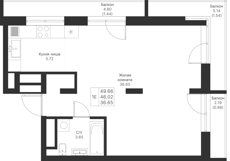 1-к квартира 49.66 м²