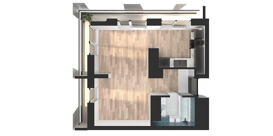 Визуализация и планировка, в том числе в части площади и размера стен жилого помещения, являются проектными и могут быть изменены в ходе строительства объекта. Цена квартиры зависит от выбранной программы и акции, актуальные цены можно уточнить у менеджеров и на момент заключения договора.