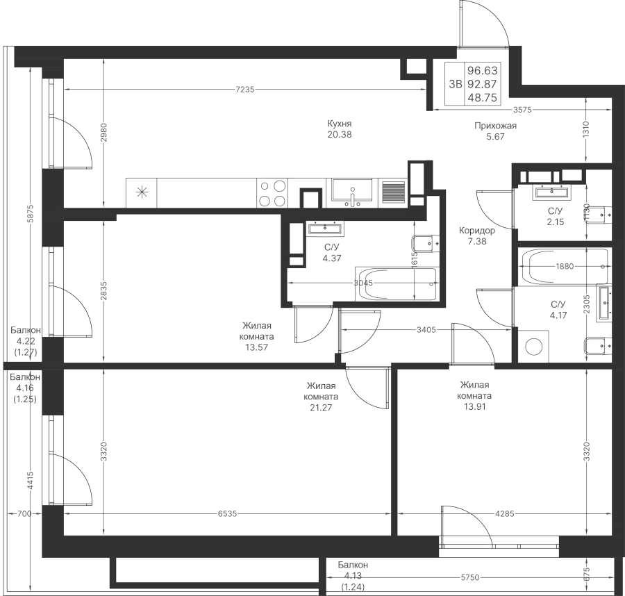 Визуализация и планировка, в том числе в части площади и размера стен жилого помещения, являются проектными и могут быть изменены в ходе строительства объекта. Цена квартиры зависит от выбранной программы и акции, актуальные цены можно уточнить у менеджеров и на момент заключения договора.