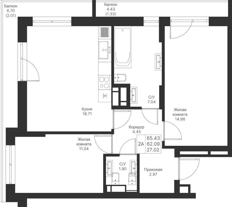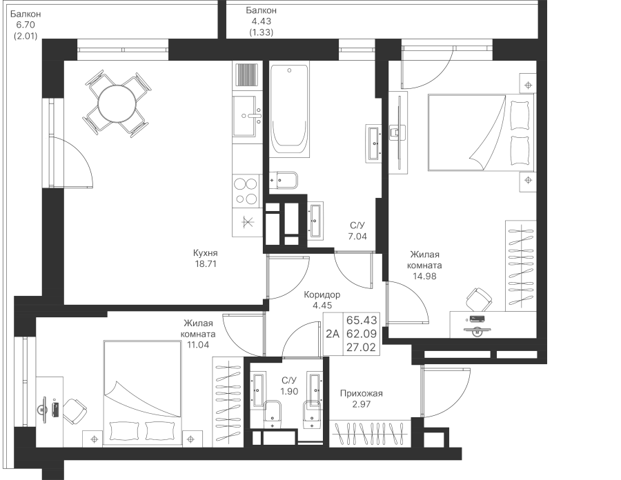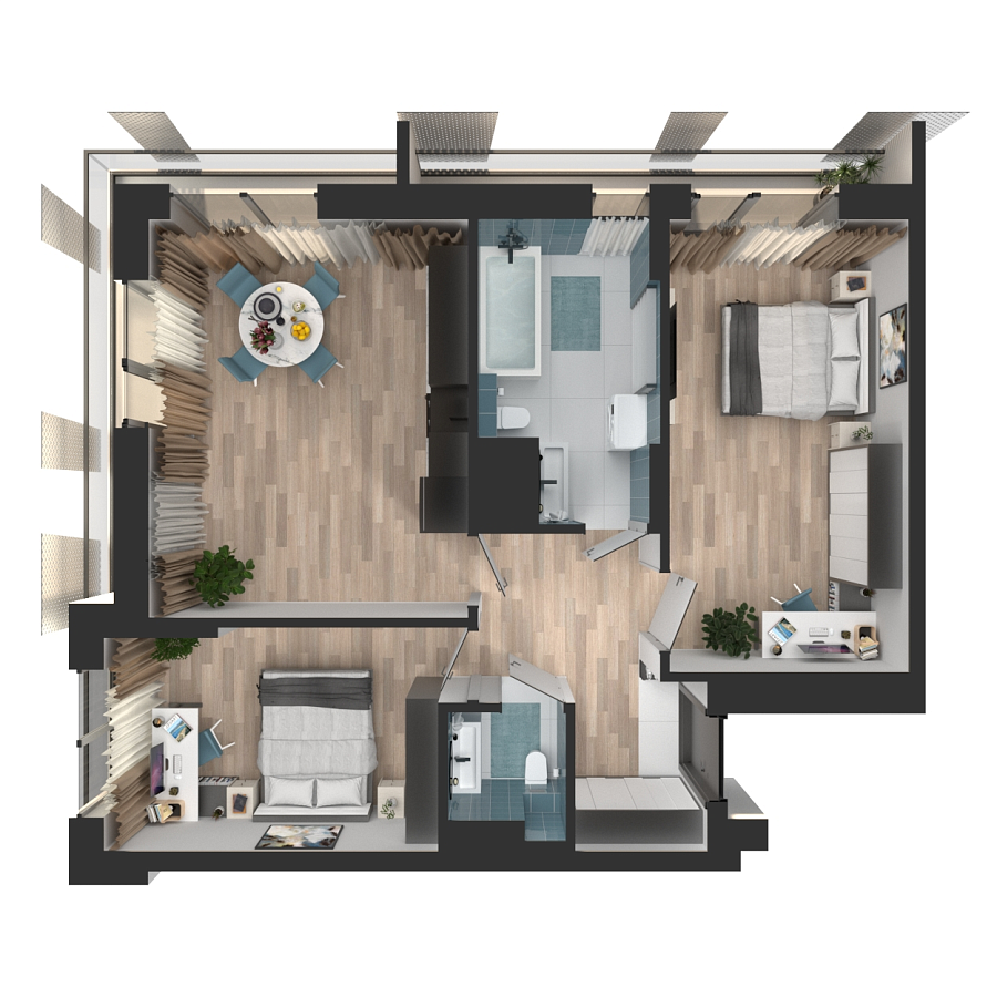Визуализация и планировка, в том числе в части площади и размера стен жилого помещения, являются проектными и могут быть изменены в ходе строительства объекта. Цена квартиры зависит от выбранной программы и акции, актуальные цены можно уточнить у менеджеров и на момент заключения договора.