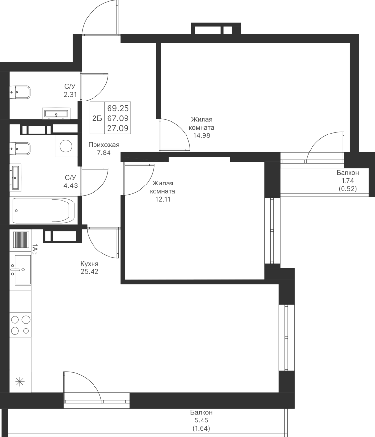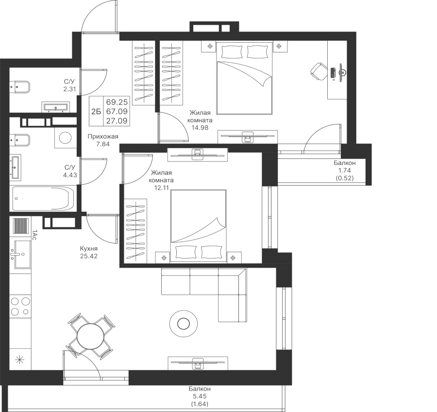 Визуализация и планировка, в том числе в части площади и размера стен жилого помещения, являются проектными и могут быть изменены в ходе строительства объекта. Цена квартиры зависит от выбранной программы и акции, актуальные цены можно уточнить у менеджеров и на момент заключения договора.