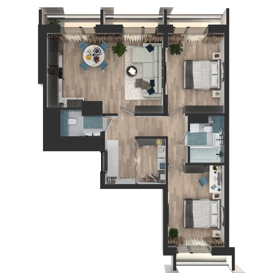 Визуализация и планировка, в том числе в части площади и размера стен жилого помещения, являются проектными и могут быть изменены в ходе строительства объекта. Цена квартиры зависит от выбранной программы и акции, актуальные цены можно уточнить у менеджеров и на момент заключения договора.