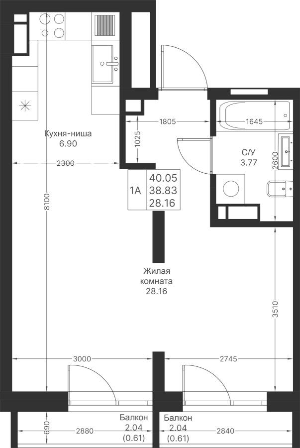 40.05 м²