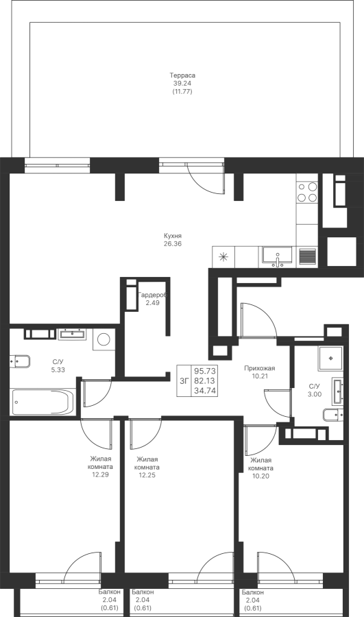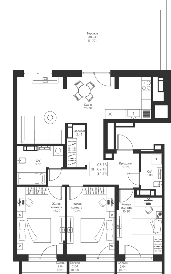 Визуализация и планировка, в том числе в части площади и размера стен жилого помещения, являются проектными и могут быть изменены в ходе строительства объекта. Цена квартиры зависит от выбранной программы и акции, актуальные цены можно уточнить у менеджеров и на момент заключения договора.