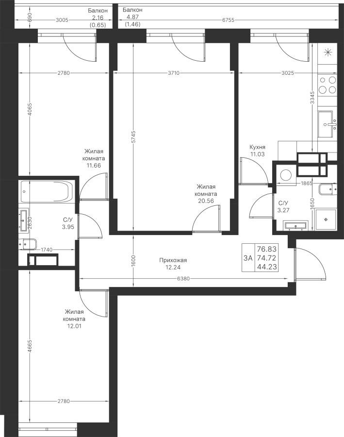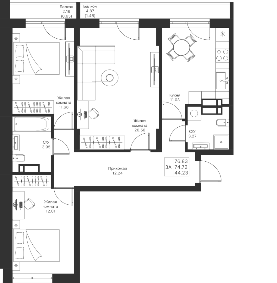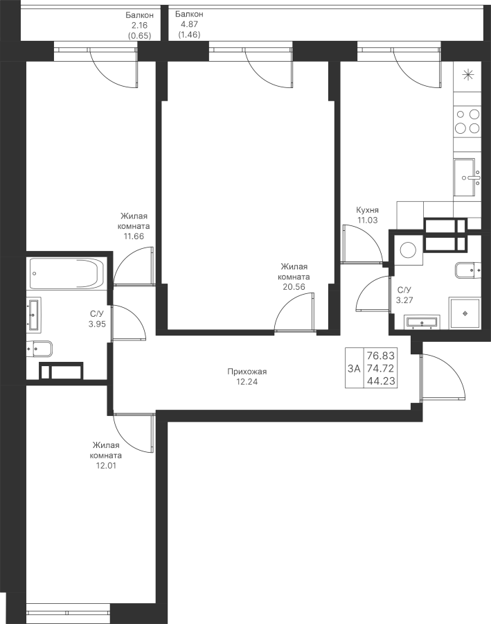 3-к квартира 76.83 м²