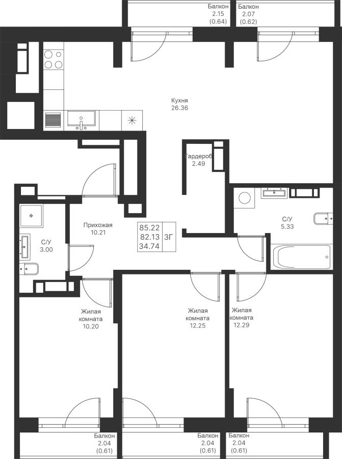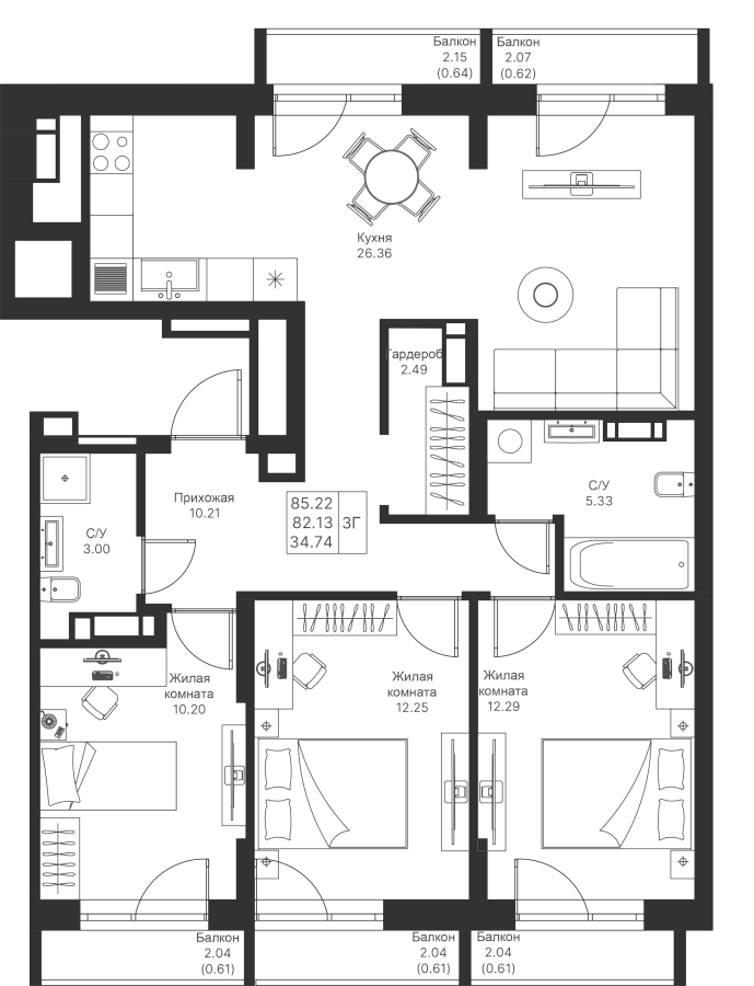 Визуализация и планировка, в том числе в части площади и размера стен жилого помещения, являются проектными и могут быть изменены в ходе строительства объекта. Цена квартиры зависит от выбранной программы и акции, актуальные цены можно уточнить у менеджеров и на момент заключения договора.