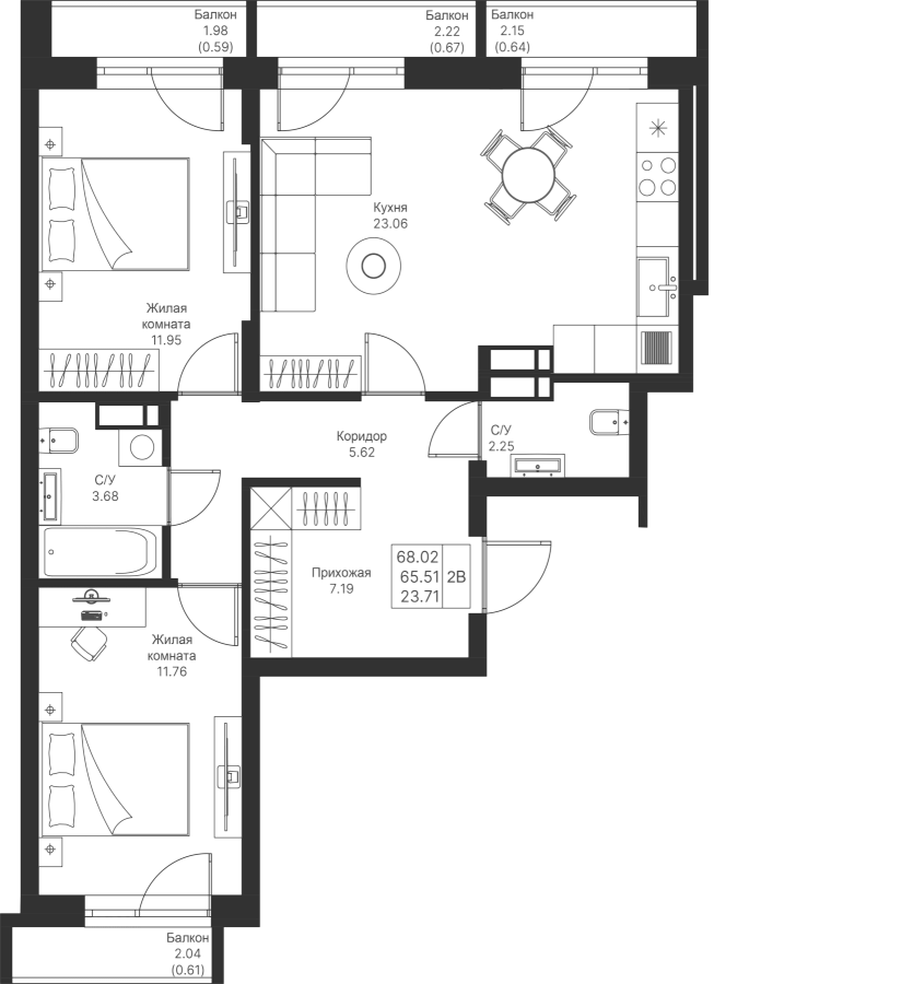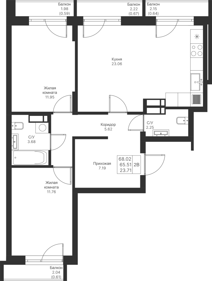 Визуализация и планировка, в том числе в части площади и размера стен жилого помещения, являются проектными и могут быть изменены в ходе строительства объекта. Цена квартиры зависит от выбранной программы и акции, актуальные цены можно уточнить у менеджеров и на момент заключения договора.