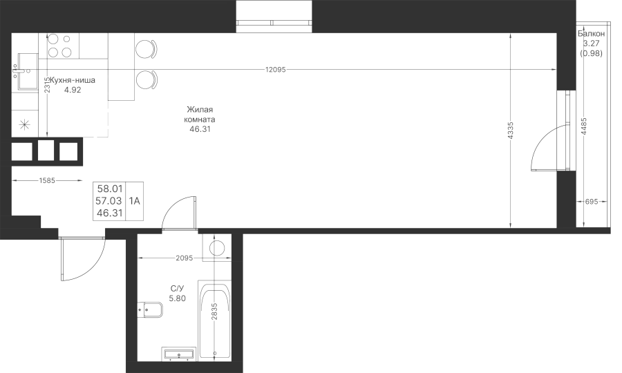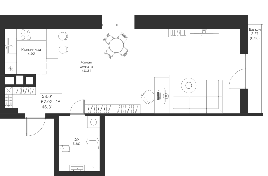 Визуализация и планировка, в том числе в части площади и размера стен жилого помещения, являются проектными и могут быть изменены в ходе строительства объекта. Цена квартиры зависит от выбранной программы и акции, актуальные цены можно уточнить у менеджеров и на момент заключения договора.