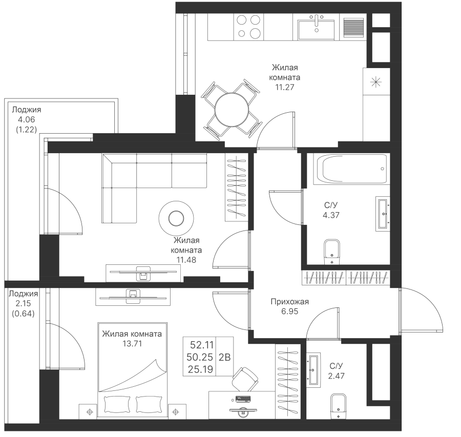 Визуализация и планировка, в том числе в части площади и размера стен жилого помещения, являются проектными и могут быть изменены в ходе строительства объекта. Цена квартиры зависит от выбранной программы и акции, актуальные цены можно уточнить у менеджеров и на момент заключения договора.