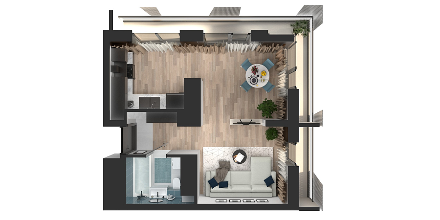 Визуализация и планировка, в том числе в части площади и размера стен жилого помещения, являются проектными и могут быть изменены в ходе строительства объекта. Цена квартиры зависит от выбранной программы и акции, актуальные цены можно уточнить у менеджеров и на момент заключения договора.