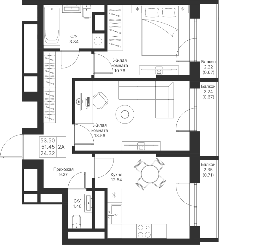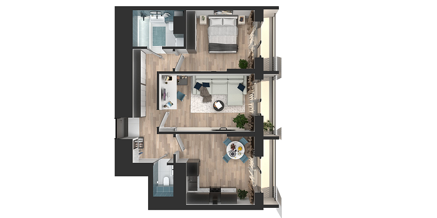 Визуализация и планировка, в том числе в части площади и размера стен жилого помещения, являются проектными и могут быть изменены в ходе строительства объекта. Цена квартиры зависит от выбранной программы и акции, актуальные цены можно уточнить у менеджеров и на момент заключения договора.