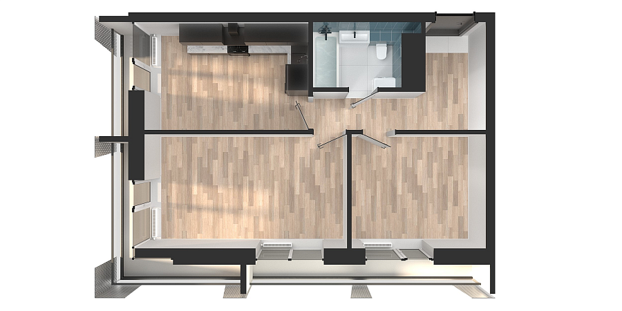 Визуализация и планировка, в том числе в части площади и размера стен жилого помещения, являются проектными и могут быть изменены в ходе строительства объекта. Цена квартиры зависит от выбранной программы и акции, актуальные цены можно уточнить у менеджеров и на момент заключения договора.