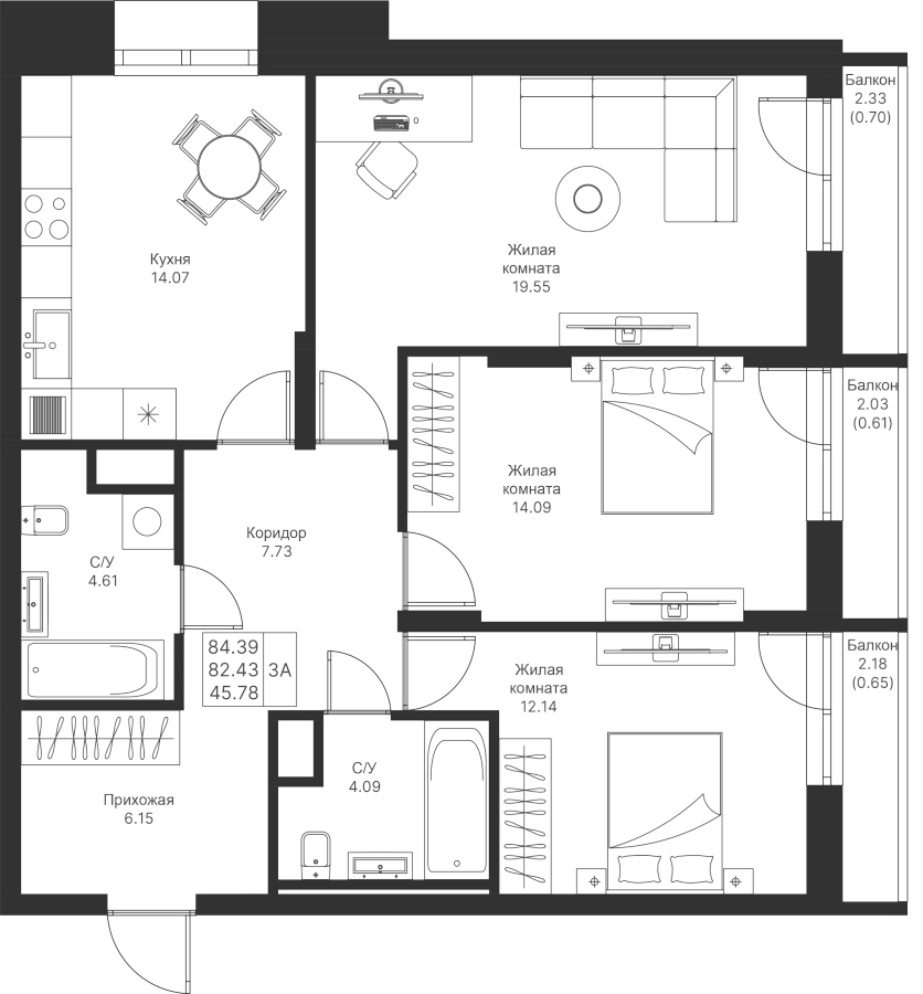 Визуализация и планировка, в том числе в части площади и размера стен жилого помещения, являются проектными и могут быть изменены в ходе строительства объекта. Цена квартиры зависит от выбранной программы и акции, актуальные цены можно уточнить у менеджеров и на момент заключения договора.