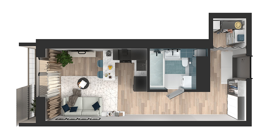 Визуализация и планировка, в том числе в части площади и размера стен жилого помещения, являются проектными и могут быть изменены в ходе строительства объекта. Цена квартиры зависит от выбранной программы и акции, актуальные цены можно уточнить у менеджеров и на момент заключения договора.