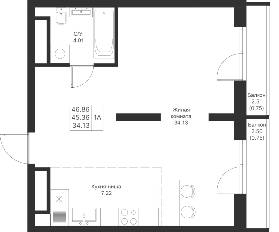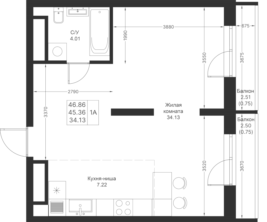 Визуализация и планировка, в том числе в части площади и размера стен жилого помещения, являются проектными и могут быть изменены в ходе строительства объекта. Цена квартиры зависит от выбранной программы и акции, актуальные цены можно уточнить у менеджеров и на момент заключения договора.