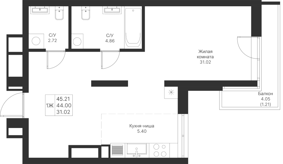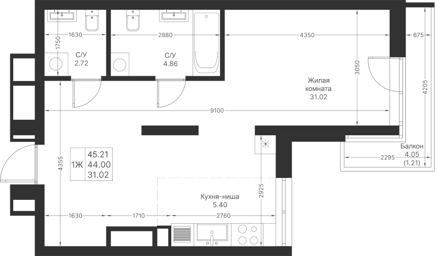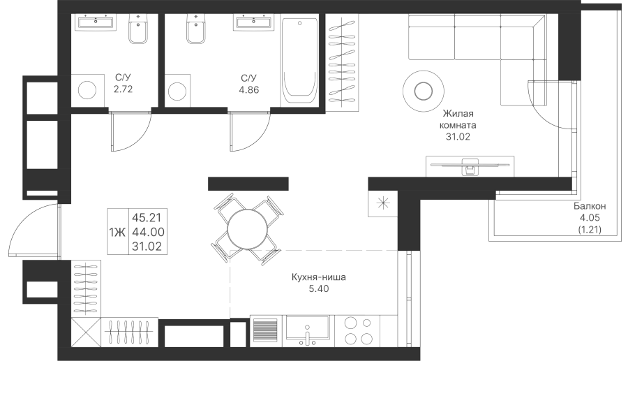 Визуализация и планировка, в том числе в части площади и размера стен жилого помещения, являются проектными и могут быть изменены в ходе строительства объекта. Цена квартиры зависит от выбранной программы и акции, актуальные цены можно уточнить у менеджеров и на момент заключения договора.