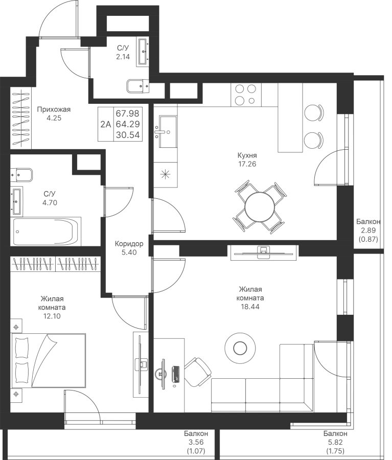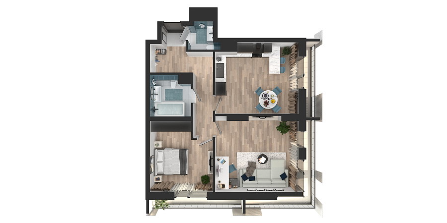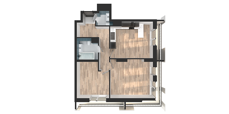 Визуализация и планировка, в том числе в части площади и размера стен жилого помещения, являются проектными и могут быть изменены в ходе строительства объекта. Цена квартиры зависит от выбранной программы и акции, актуальные цены можно уточнить у менеджеров и на момент заключения договора.