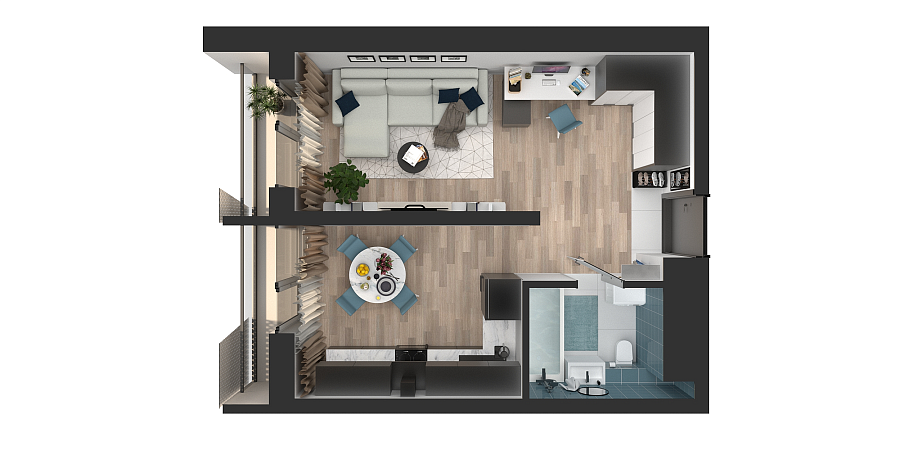 Визуализация и планировка, в том числе в части площади и размера стен жилого помещения, являются проектными и могут быть изменены в ходе строительства объекта. Цена квартиры зависит от выбранной программы и акции, актуальные цены можно уточнить у менеджеров и на момент заключения договора.