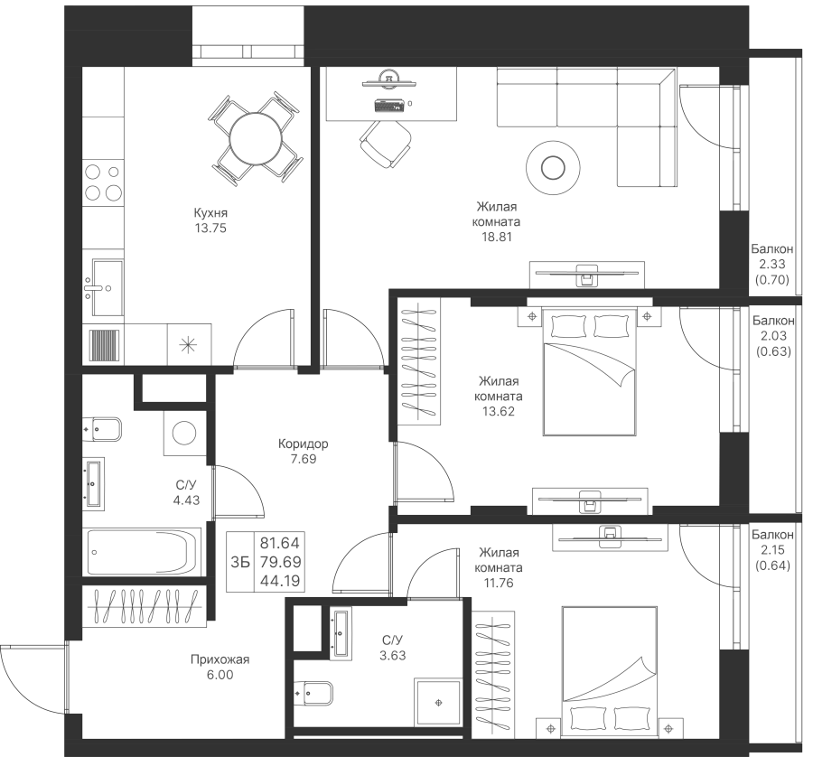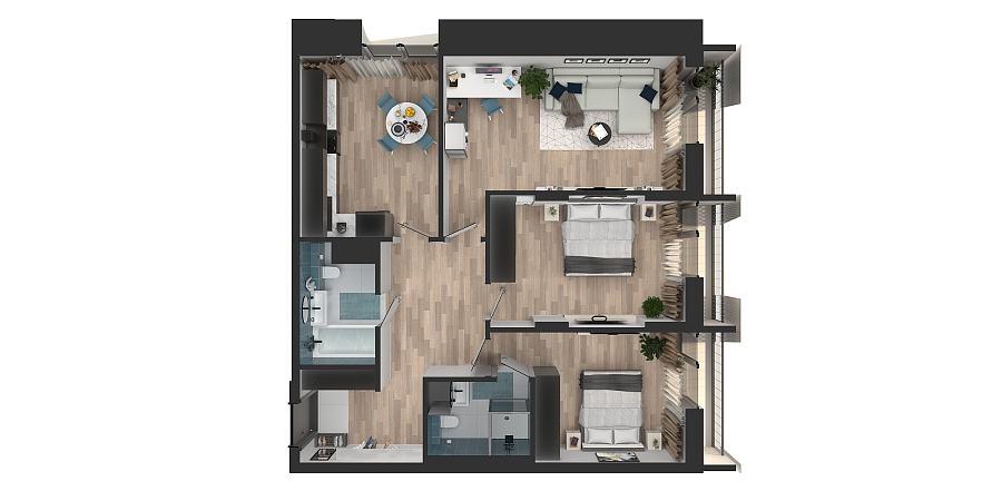 Визуализация и планировка, в том числе в части площади и размера стен жилого помещения, являются проектными и могут быть изменены в ходе строительства объекта. Цена квартиры зависит от выбранной программы и акции, актуальные цены можно уточнить у менеджеров и на момент заключения договора.
