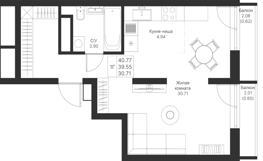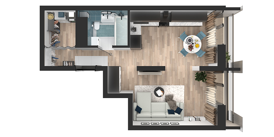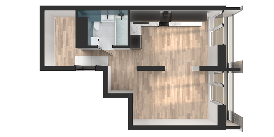 Визуализация и планировка, в том числе в части площади и размера стен жилого помещения, являются проектными и могут быть изменены в ходе строительства объекта. Цена квартиры зависит от выбранной программы и акции, актуальные цены можно уточнить у менеджеров и на момент заключения договора.