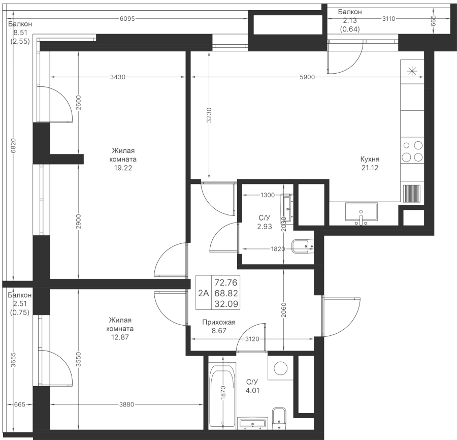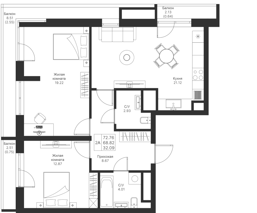 Визуализация и планировка, в том числе в части площади и размера стен жилого помещения, являются проектными и могут быть изменены в ходе строительства объекта. Цена квартиры зависит от выбранной программы и акции, актуальные цены можно уточнить у менеджеров и на момент заключения договора.