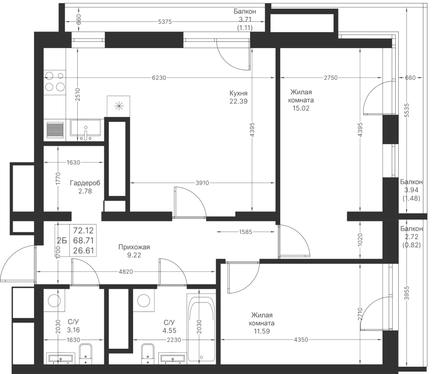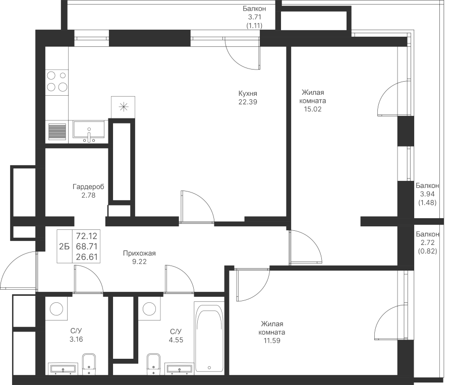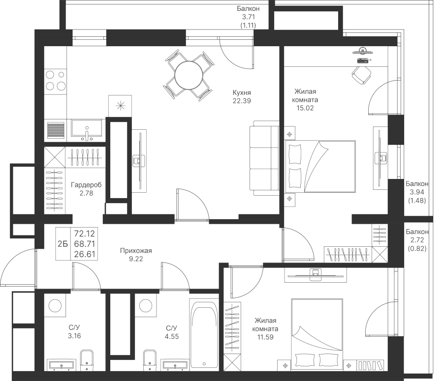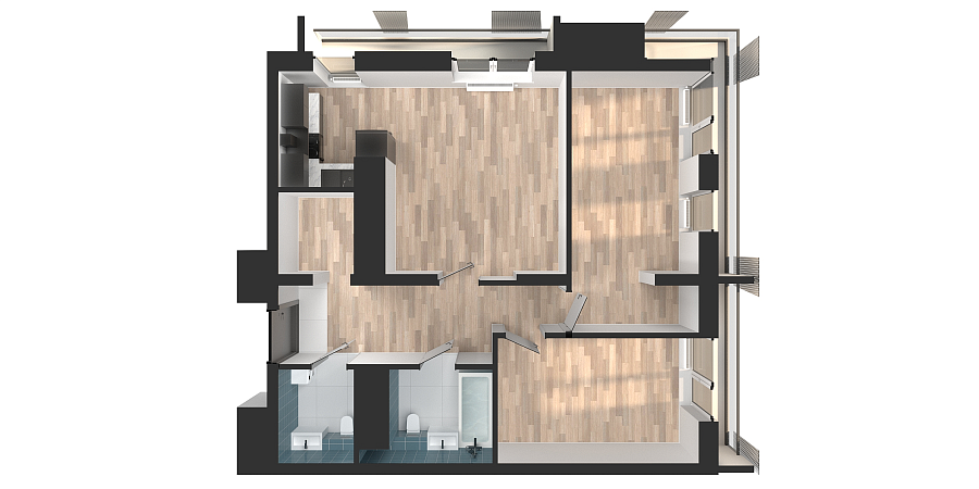 Визуализация и планировка, в том числе в части площади и размера стен жилого помещения, являются проектными и могут быть изменены в ходе строительства объекта. Цена квартиры зависит от выбранной программы и акции, актуальные цены можно уточнить у менеджеров и на момент заключения договора.