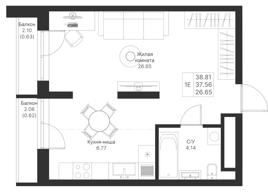 Визуализация и планировка, в том числе в части площади и размера стен жилого помещения, являются проектными и могут быть изменены в ходе строительства объекта. Цена квартиры зависит от выбранной программы и акции, актуальные цены можно уточнить у менеджеров и на момент заключения договора.